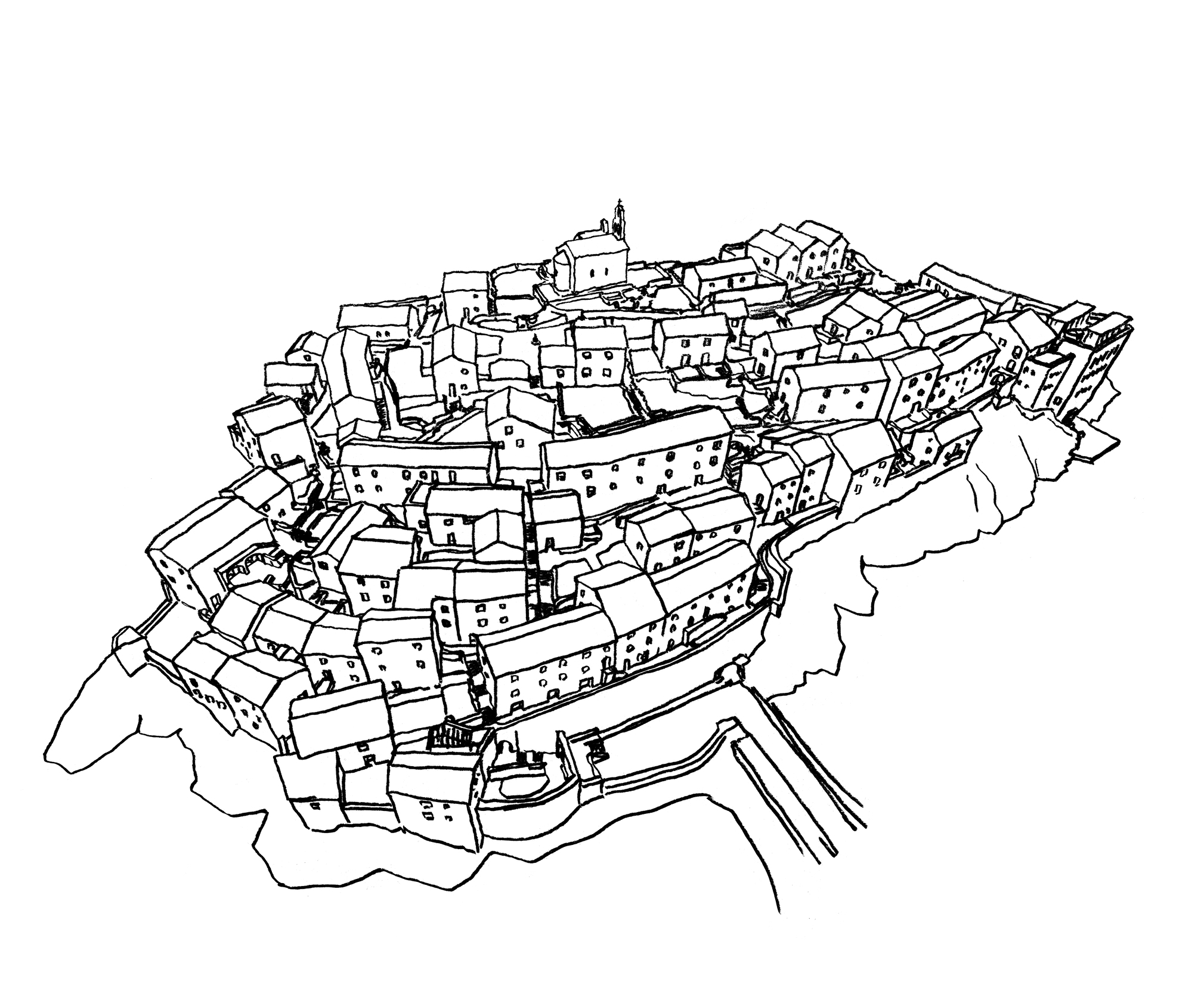 Figure 1.The settlement of Sveti Stefan (drawing by the author).
